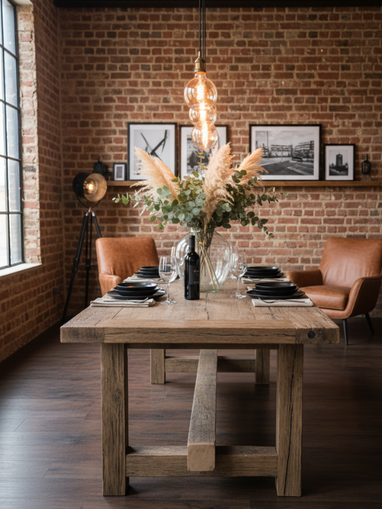 Stilwood, endüstriyel sağlamlığı ve rustik doğallığı bir araya getiren, %100 geri kazanılmış meşe ağacından el işçiliğiyle üretilmiş özel bir yemek masasıdır.